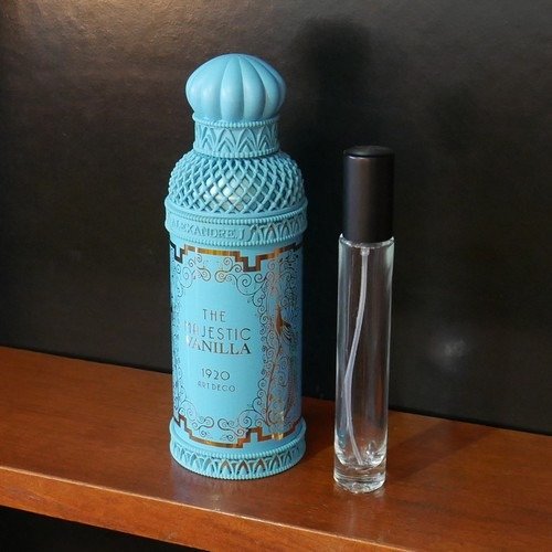 Majestic Vanilla es una de las sofisticadas fragancias de la Art Deco Collection de la familia Alexandre J. Una fragancia de vainilla oriental para mujeres y hombres. Fresco, dulce, ahumado, cremoso, terroso, cálido y tentador. Notas principales de canela, bergamota y mandarín. Notas del corazón de Galbanum, Tonka Bean & Peach. Notas básicas de almizcle, labdanum, pachulí, vainilla y madera de ámbar. Majestic Vanilla fue creada por Amelie Bourgeois y Anne-Sophie Behaghel.